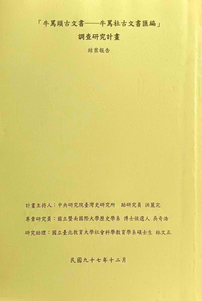 「牛罵頭古文書-牛罵社古文書匯編」調查研究計畫